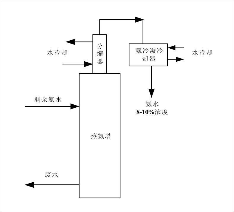 (3)剩余氨水需蒸氨后含氨量降至250mg/L以下,才能去生化進(jìn)一步處理;